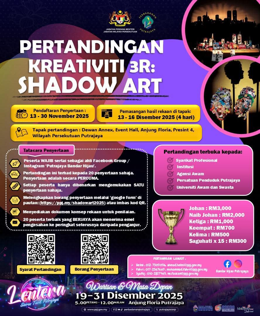LENTERA 2025 promises to captivate visitors with a variety of artistic and innovative elements, including Illuminated Garden Decorations, Luminous Sculpture Designs, Cultural Light Performances, and exciting interactive games. Each of these elements represents a fusion of light artistry and creative artistic expression. The entire showcase will illuminate and enliven the night atmosphere at Anjung Floria, offering visitors a mesmerizing and unforgettable experience.